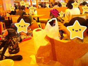 その場で購入したハンバーガーを食べるお友達も居て