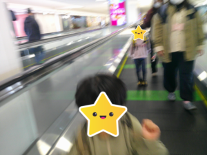 帰りは大好きな動く歩道に乗って